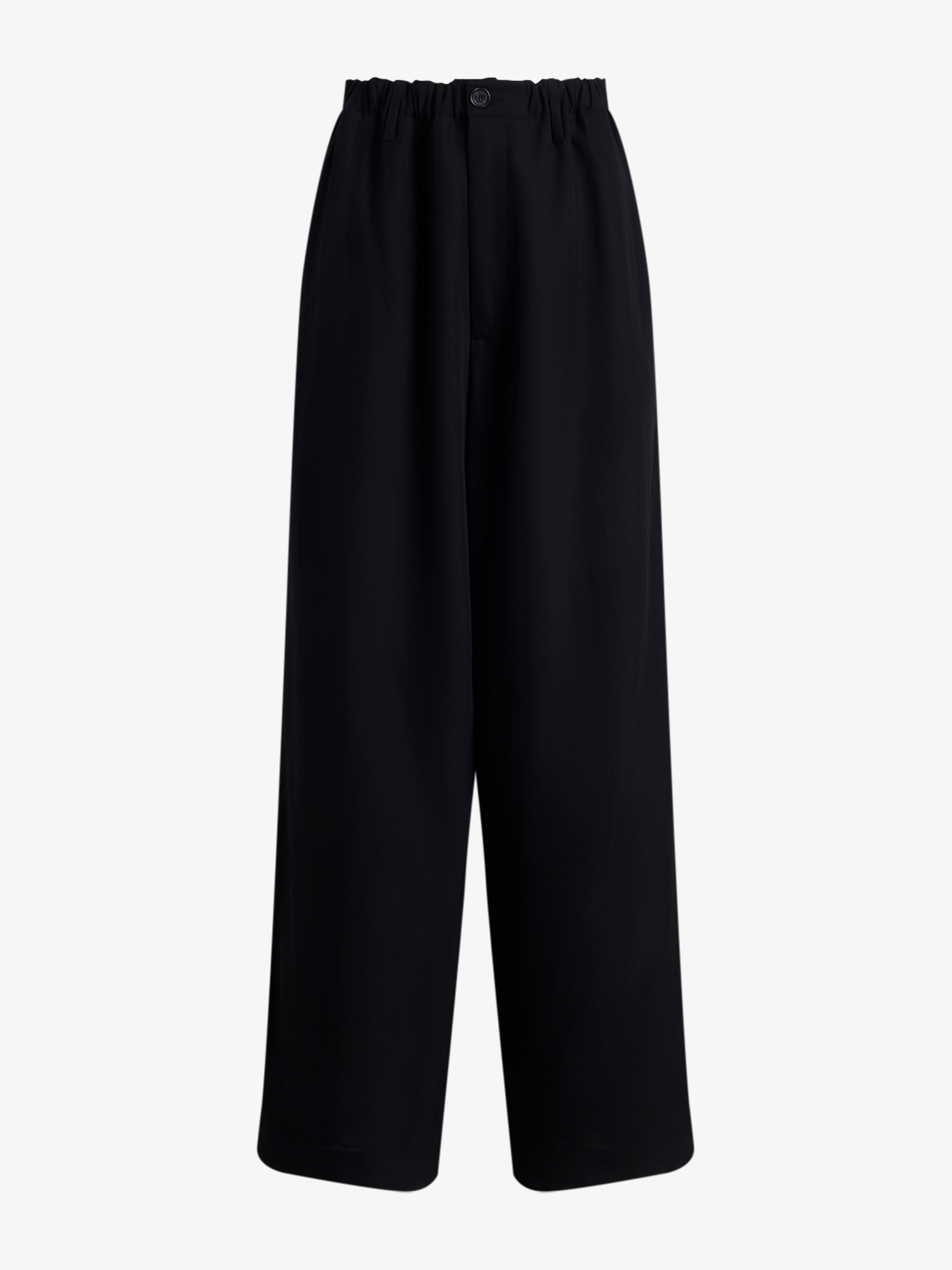 The Salome Pant in Classic Twill is crafted in a high-rise silhouette with gathered ruching at the waistband. Falling wide through the leg, they're finished with buttoned patch pockets at the back. Details - Black - High waist - Gathered waistband - Zip & button closure - Slip pockets - Buttoned back pockets - Wide leg - Baggy silhouette - 79% viscose, 21% wool - SKU: R2546002AY213001 Size & Fit - Model is 5'11'' with 30'' bust / 35.5'' hips. Wearing size Large Care - 79% viscose, 21% wool - Dry clean only