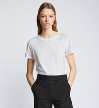 Core Collection Exclusive to proenzaschouler.com The Short Sleeve T-Shirt is crafted in fine tissue jersey with a subtle all-over melange effect. Details • White • Mélange effect • Crew neck • Short sleeves • Straight hem • 100% cotton • SKU: R2144020JC010100 Size & Fit • Model is 5'9"; with 31"; bust / 33"; hips / 24"; waist. Wearing size Small Care • 100% cotton • Dry clean only