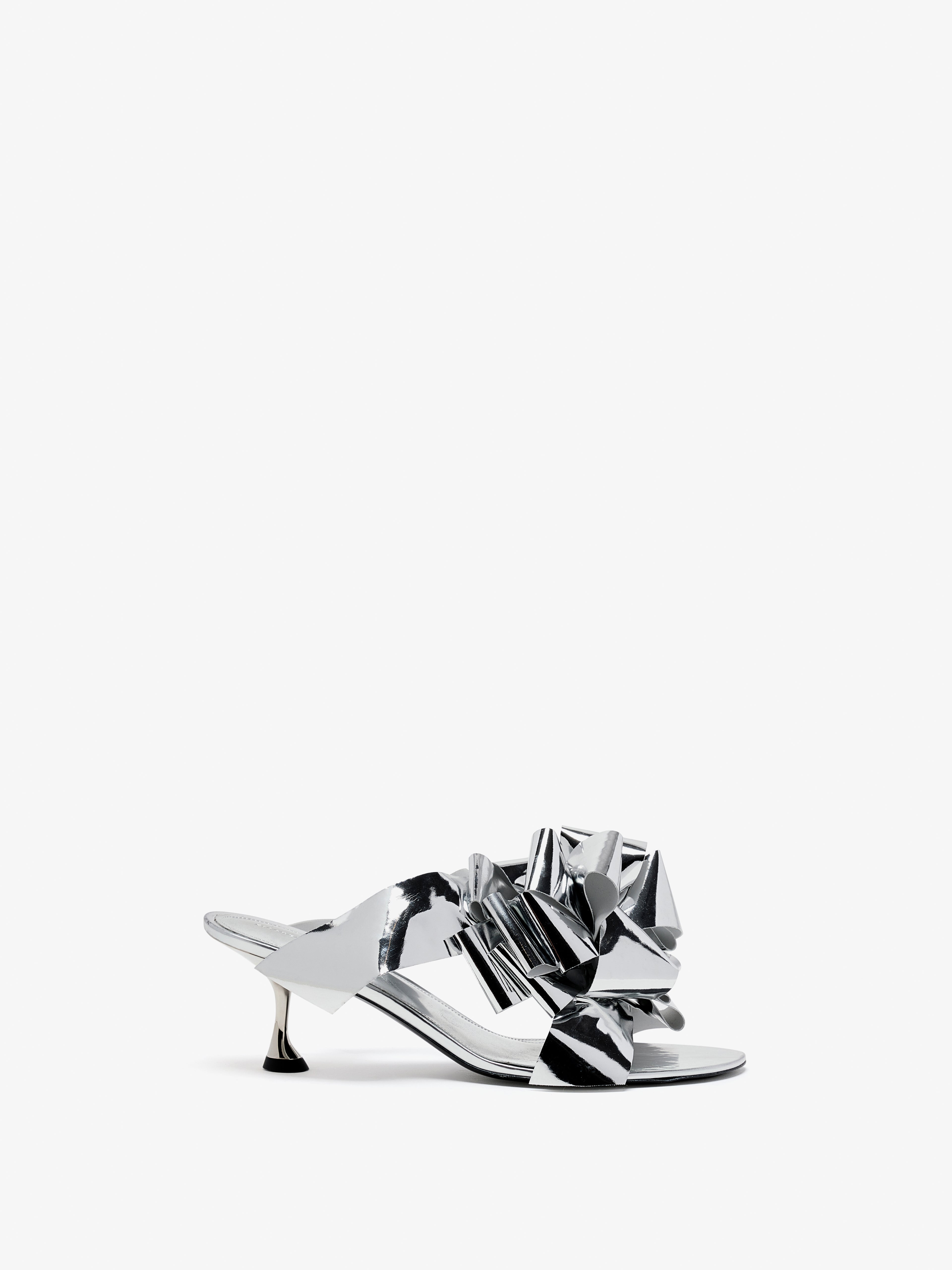 The Tee Souvenir Sandals are crafted in mirror foil pairing a classic slip-on silhouette with an exaggerated bow embellishment draped along the front. Details - Silver - Foiled metallic - 60mm heel - Slip-on silhouette - Thong style front - Exaggerated fixed bow - 100% polyurethane - SKU: SH254098F007A040 Size & Fit - True to size Care - 100% polyurethane - Please refer to care instructions provided with your order.