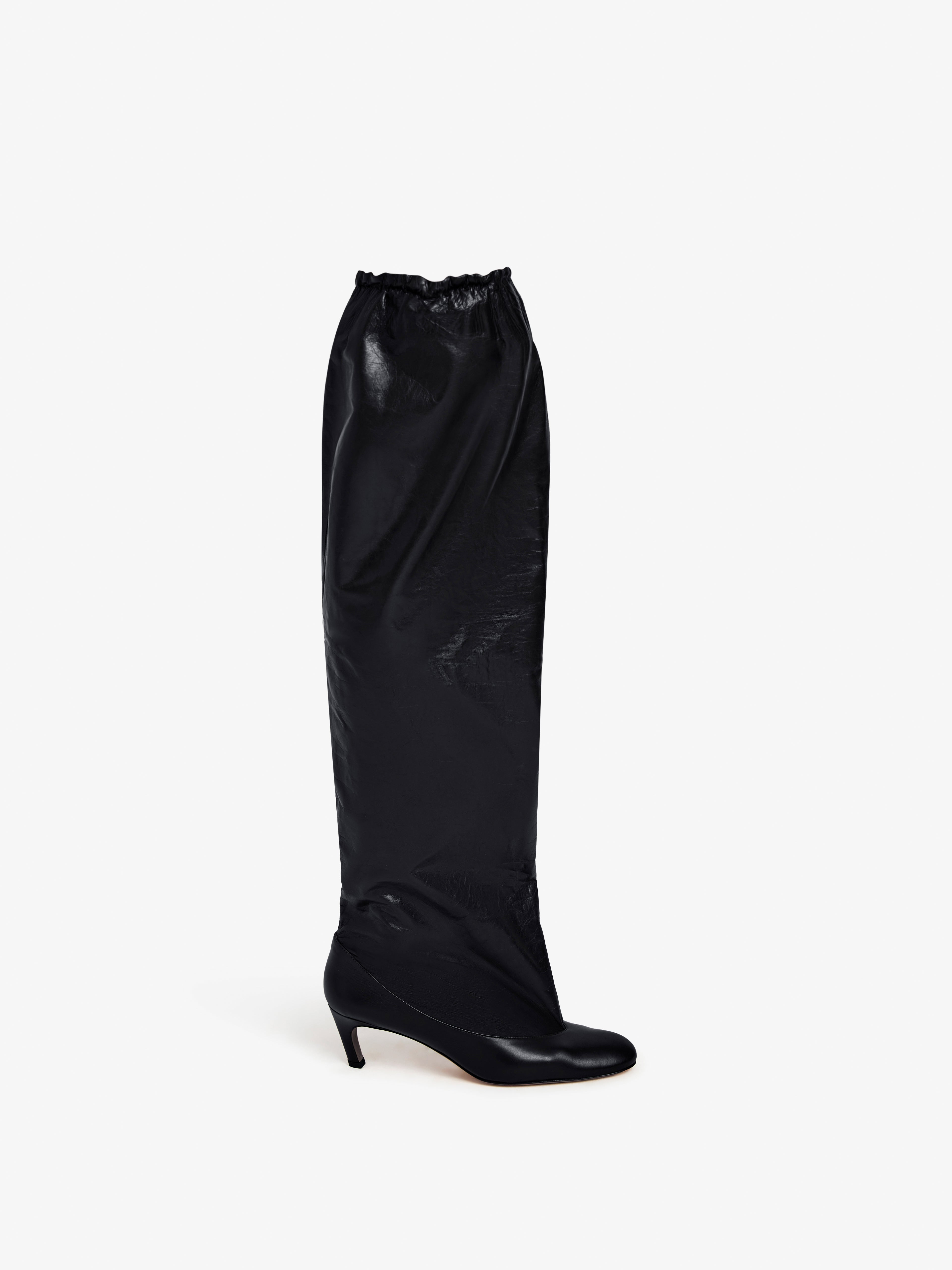 The Uma Over The Knee Boots are crafted in slick calf to a voluminous knee-high silhouette. Detailed with a lightweight leather shaft and an elasticated top band. Details - Black - 60mm heel - Wide shaft - Elasticated top - Voluminous finish - Upper: 100% slick calf; Sole: 100% calfskin - SKU: SH254083C008WC001 Size & Fit - True to size Care - Upper: 100% slick calf; Sole: 100% calfskin - Please refer to care instructions provided with your order.