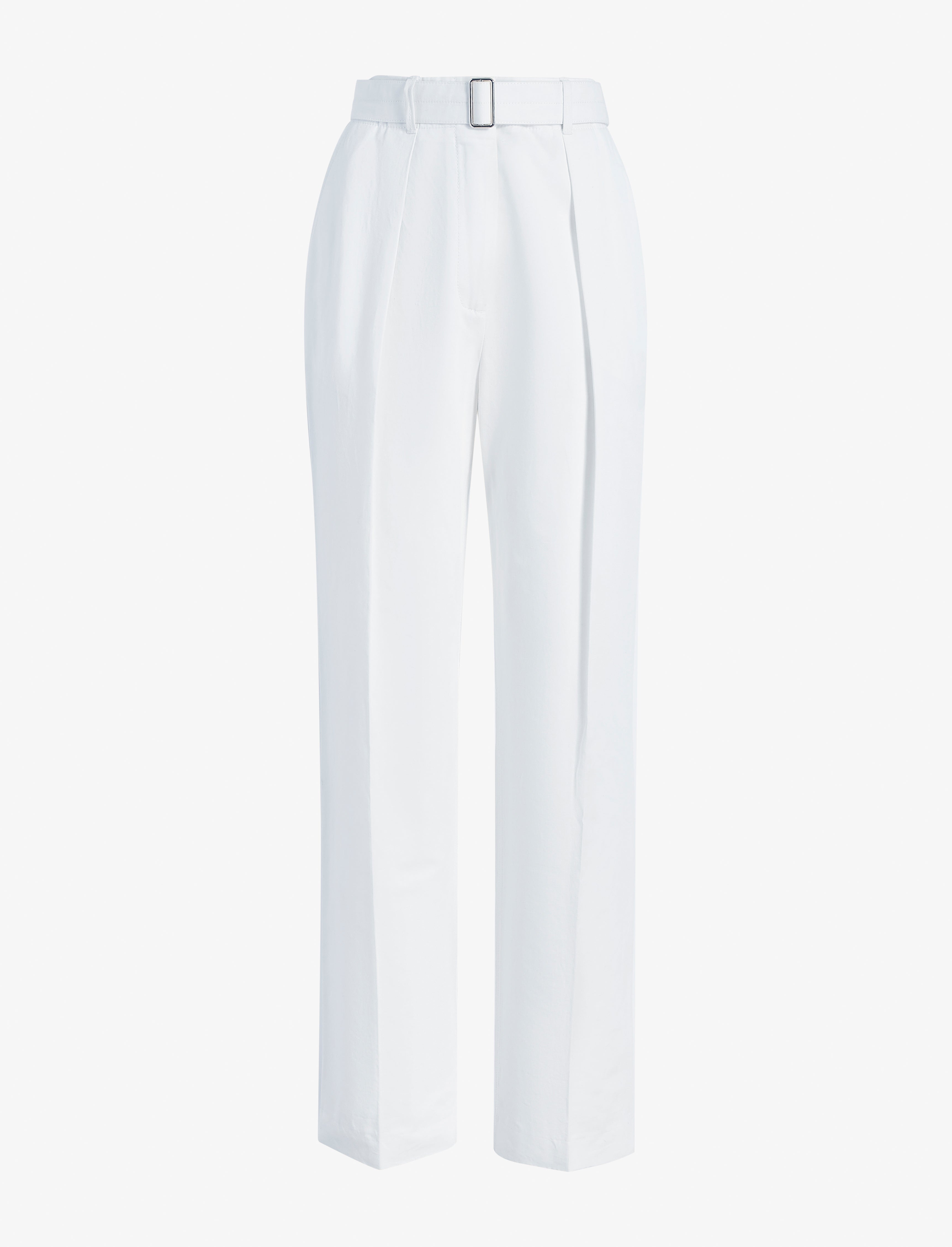 The Vera Pant in Cotton Linen Suiting is tailored to a high-waisted silhouette with a concealed fastening and tonal slider belt. Falling tapered through the leg, they are accentuated with center pleats and side slip pockets. Details - White - High-waisted - Belt loops - Slider belt - Silver-tone hardware - Concealed front closure - Side slip pockets - Center pleats - Tapered leg - Full-length hem - 77% cotton, 23% linen - SKU: R2536000AC156100 Size & Fit - Model is 5'9.5'' with 32'' bust / 34'' hips. Wearing size 4 Care - 77% cotton, 23% linen - Dry clean only
