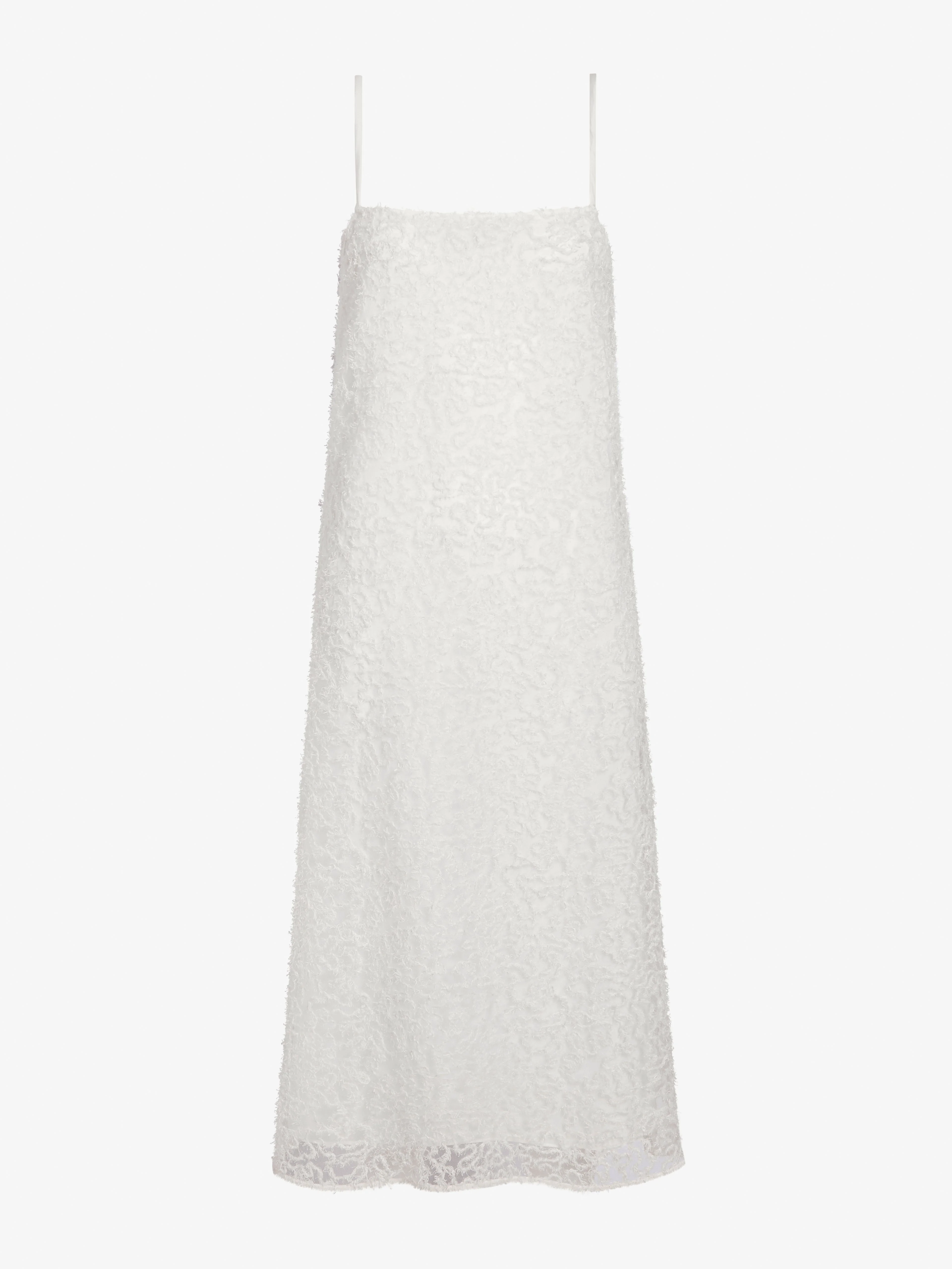 The Virginie Dress in Fringe Embroidery is intricately crafted with textural embroidery for a dimensional finish. Features a shift silhouette with a straight neckline, accentuated by thin leather shoulder straps. Details - Black - Textured fringe embroidery - Straight neckline - Leather shoulder straps - Concealed zipper fastening - Straight hem - Shift silhouette - 31% canepa, 24% polyester, 17% acrylic, 17% wool, 6% cotton - SKU: R2614025EM209001 Size & Fit - Model is 5'10'' with 32'' bust / 34'' hips. Wearing size 4 Care - 31% canepa, 24% polyester, 17% acrylic, 17% wool, 6% cotton - Dry clean only