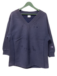 Vintage CHAMPION Logo C V Neck 3Quarter Sleeve Sweatshirt