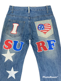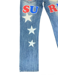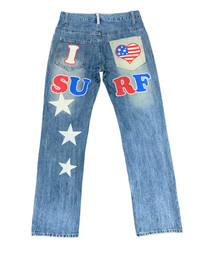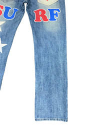 Vintage Surf Surfing Logo Style Distressed Denim Jeans