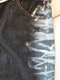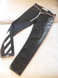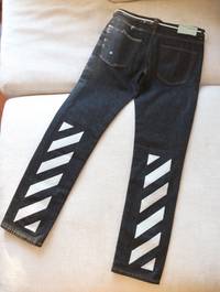 2019 Off White c/o Virgil Abloh straight leg dark dray jeans with decorative white paint smudges and embroidered diag stripe at back. Waist is 31" equivalent to S size international 👀 YOU NEED TO READ THIS! 👀 Shipping from **Hong Kong SAR** It’s not in Japan, no. ***All items shipped will be marked as low cost merch*** ***Lowball offers/ asking for big discount on top of heavily discounted items = No Response*** Selling on other platforms as well, if item is removed it’s probably sol