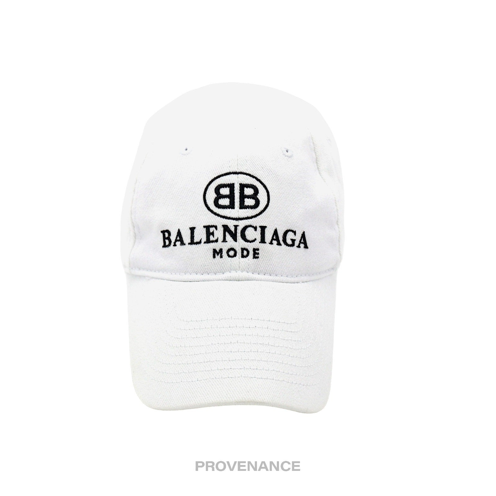 Balenciaga BB Logo Mode Embroidered Cap Hat - White 100% Authentic - Money Back Guarantee Condition Notes: some signs of cosmetic wear wash tag appears to be missing professionally cleaned - Logo embroidered at front - Topstitched details and embroidered ventilation eyelets - Adjustable - 100% Cotton - Made in Italy Tagged Size; L/58, adjustable FREE EXPRESS SHIPPING SAME-DAY SHIPPING. HASSLE-FREE RETURNS