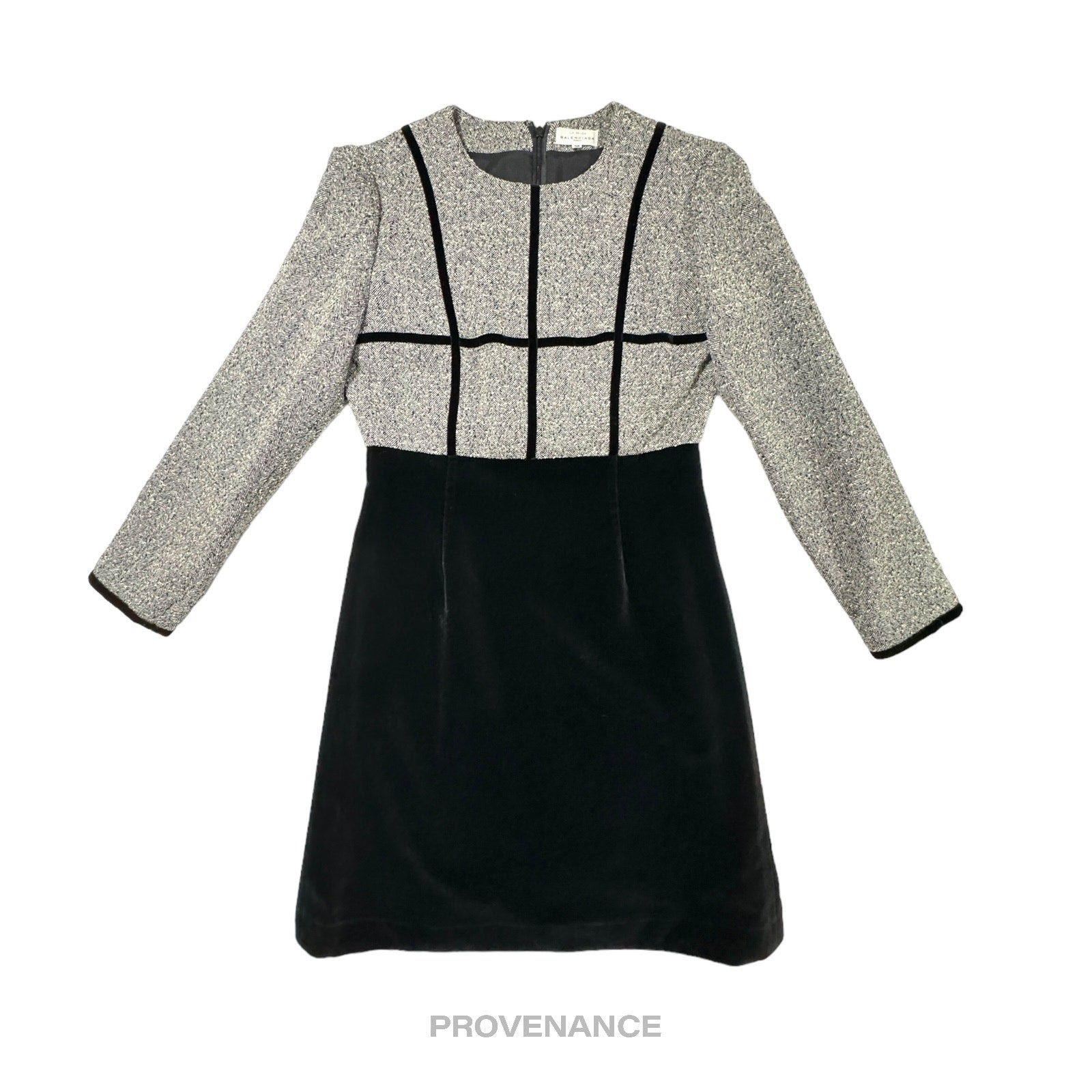 Balenciaga Docking Dress - Herringbone Boucle Velour 100% Authentic - Money-Back Guarantee Condition Notes: very minor signs of cosmetic wear Professionally cleaned Tagged Size: 38 - Fully lined - Zipper closure - Velour trim FREE EXPRESS SHIPPING SHIPS WITHIN 24HR. HASSLE-FREE RETURNS