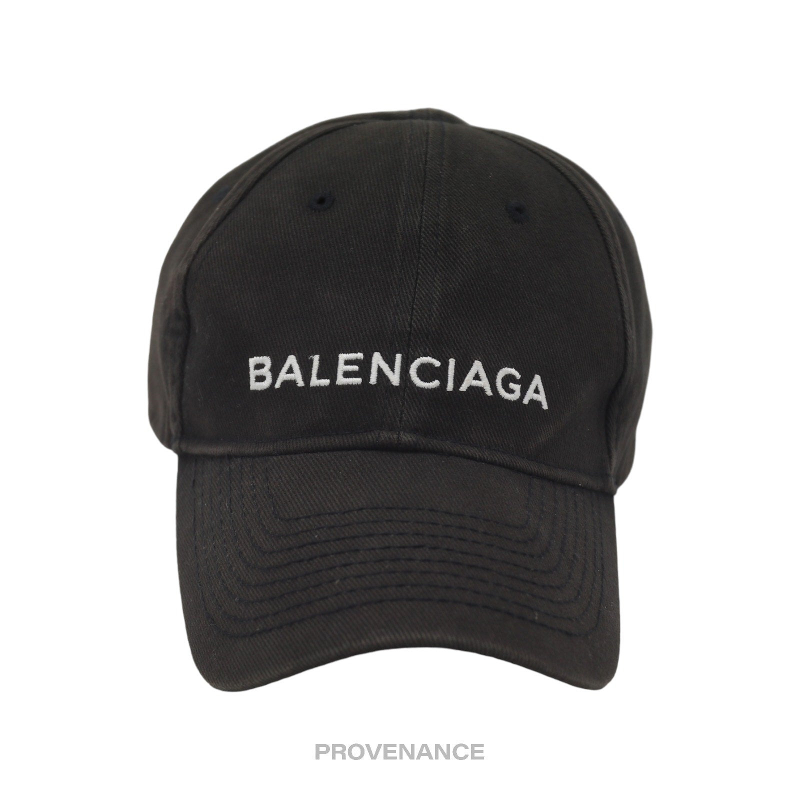 Balenciaga Embroidered Logo Cap - Washed Black 100% Authentic - Money Back Guarantee Condition Notes: some signs of cosmetic wear professionally cleaned - Logo embroidered at front in white - Topstitched details and embroidered ventilation eyelets - Adjustable - 100% Cotton ONE SIZE FREE EXPRESS SHIPPING SHIPS WITHIN 24HR. HASSLE-FREE RETURNS