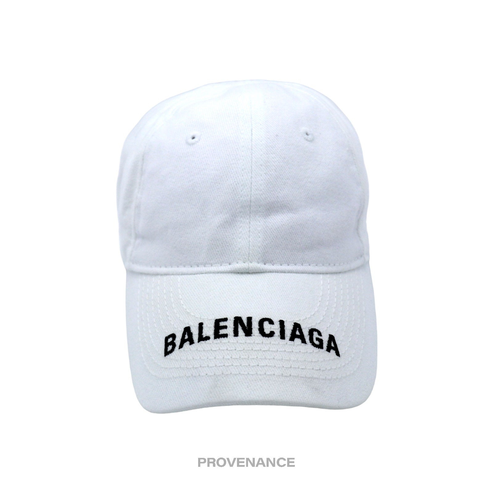 Balenciaga Embroidered Logo Cap - White 100% Authentic - Money Back Guarantee Condition Notes: some signs of cosmetic wear professionally cleaned - Logo embroidered at brim in white - Topstitched details and embroidered ventilation eyelets - Adjustable - 100% Cotton - Made in Italy ONE SIZE FREE EXPRESS SHIPPING SHIPS WITHIN 24HRS. HASSLE-FREE RETURNS