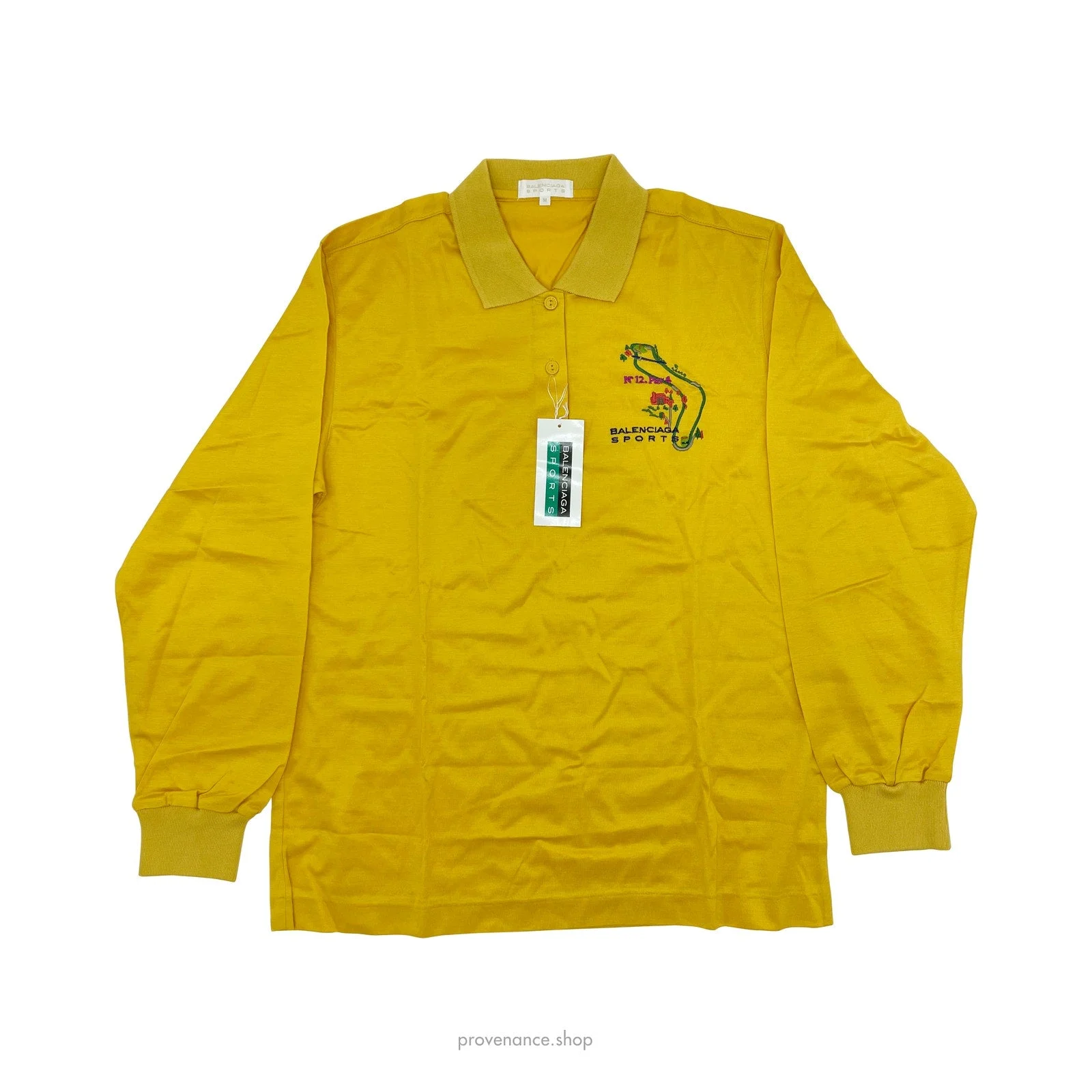 BALENCIAGA Embroidered Long Sleeve Polo Shirt - Yellow 100% Authentic - Money Back Guarantee Condition Notes: Vintage Deadstock NOS condition Size: M - Embroidery at chest - 100% cotton - Made in Japan FREE EXPRESS SHIPPING SHIPS WITHIN 24HR.