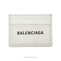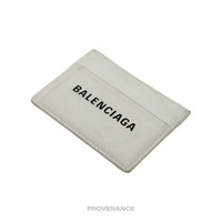Balenciaga Logo Card Holder Wallet - White ORIGINAL RETAIL BOX INCLUDED 100% Authentic - Money-Back Guarantee Condition Notes: some signs of cosmetic wear - 4 exterior card slots - 1 interior compartment - Tonal leather lining - Made in Italy FREE EXPRESS SHIPPING SHIPS WITHIN 24HR. HASSLE-FREE RETURNS