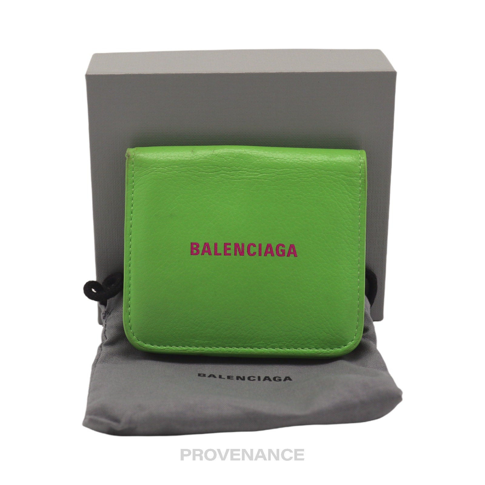 Balenciaga Logo Print Bifold Wallet - Green Leather