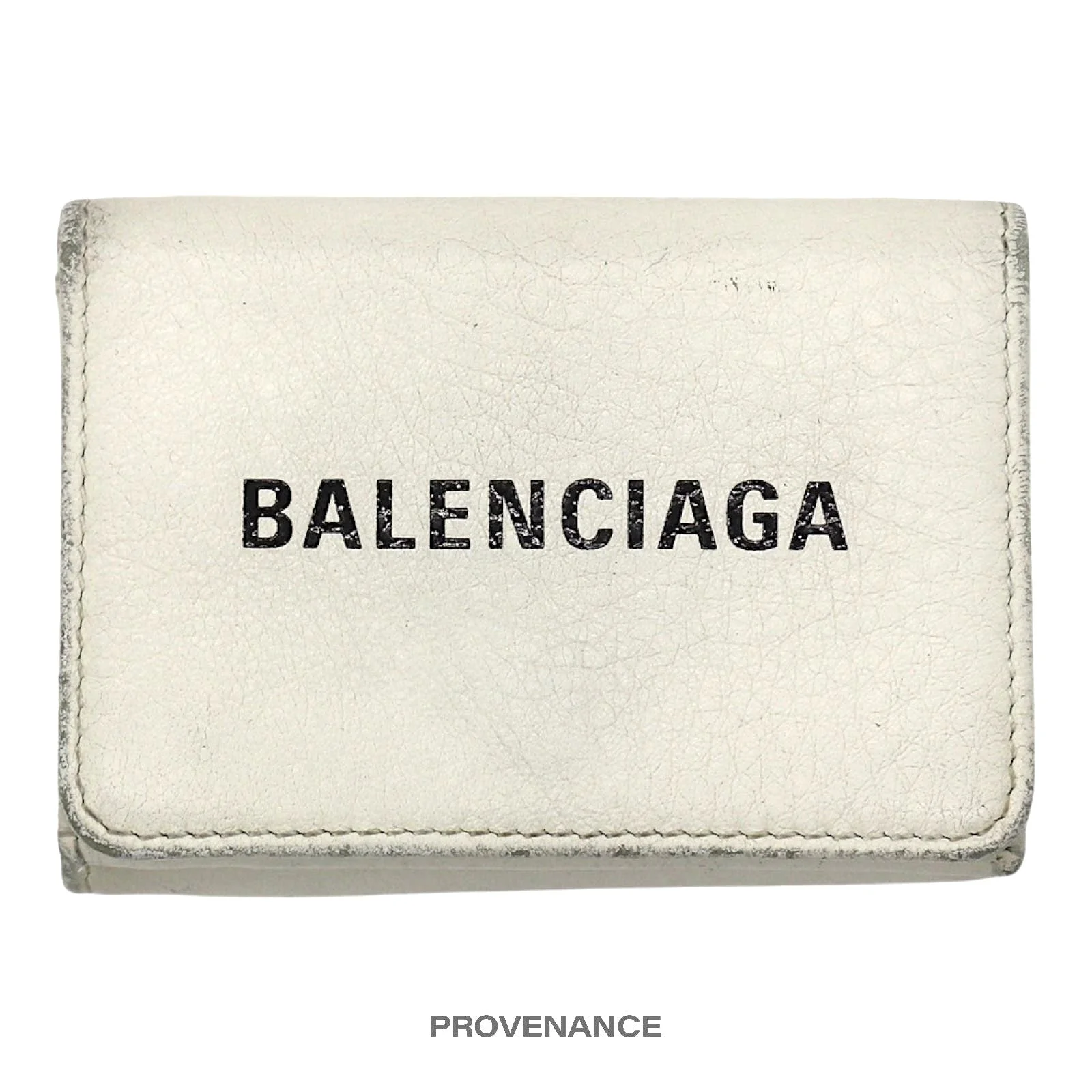 Balenciaga Logo Print Trifold Wallet - White 100% Authentic - Money Back Guarantee ORIGINAL RETAIL BOX + DUST BAG, ETC. INCLUDED Condition Notes: some signs of cosmetic wear - Press-stud fastening - Interior card slots - 1 interior bill compartment - 1 exterior coin pocket with a press-stud closure - Made in Italy FREE EXPRESS SHIPPING SHIPS WITHIN 24HR. HASSLE-FREE RETURNS