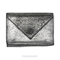 Balenciaga Papier Mini Wallet - Metallic 100% Authentic - Money-Back Guarantee Condition Notes: some signs of cosmetic wear - Crafted from metallic calfksin - Flap with snap fastening - Coin section with snap fastening - 1 bill compartment and front palladium embossed Balenciaga logo - Made in Italy. FREE EXPRESS SHIPPING SHIPS WITHIN 24HR. HASSLE-FREE RETURNS