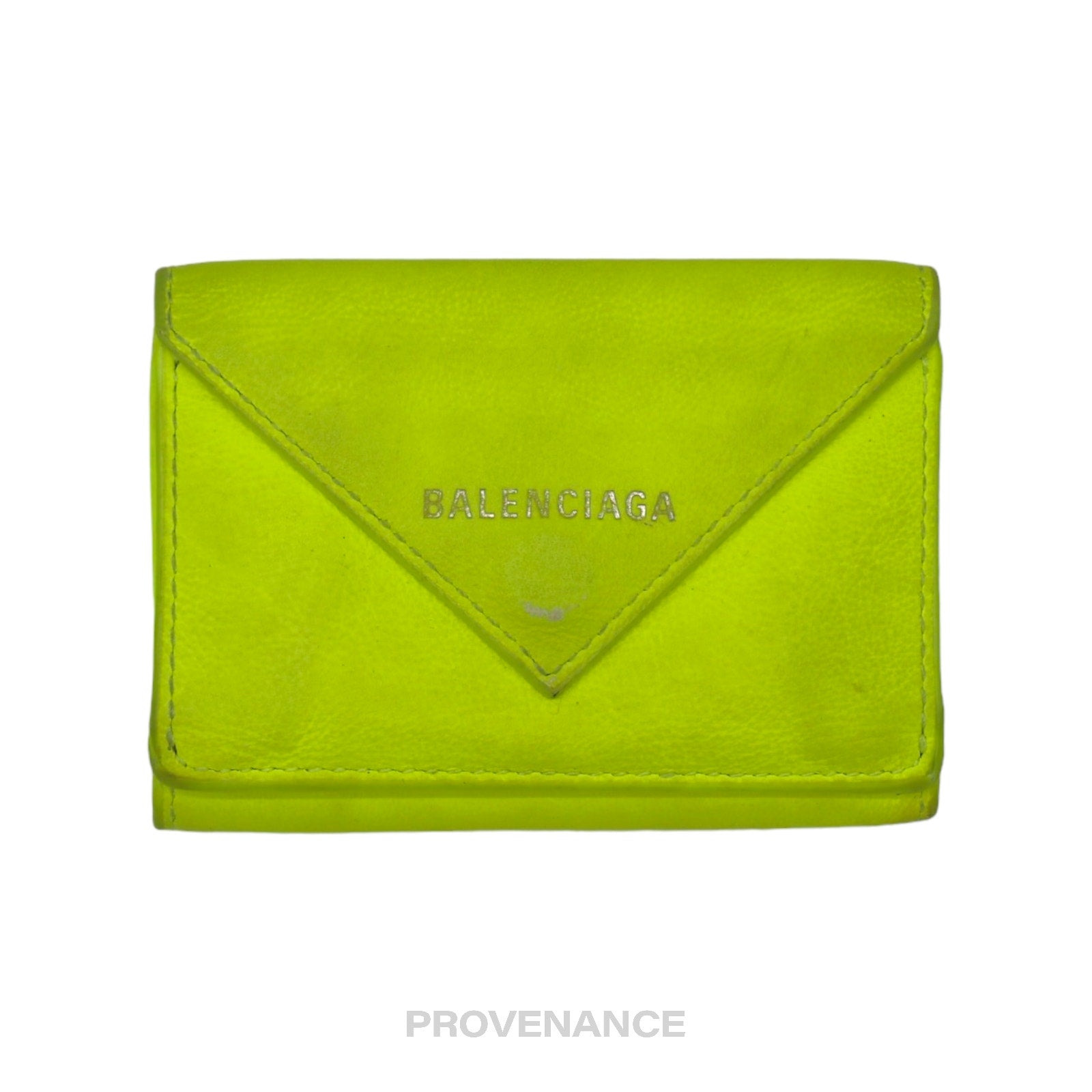 Balenciaga Papier Mini Wallet - Neon Leather 100% Authentic - Money-Back Guarantee Condition Notes: some signs of cosmetic wear - Crafted from calfksin - Flap with snap fastening - Coin section with snap fastening - 1 bill compartment and front palladium embossed Balenciaga logo - Made in Italy. FREE EXPRESS SHIPPING SHIPS WITHIN 24HR. HASSLE-FREE RETURNS