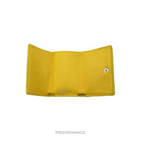 Balenciaga Papier Mini Wallet - Yellow Leather 100% Authentic - Money-Back Guarantee Condition Notes: some signs of cosmetic wear - Crafted from calfksin - Flap with snap fastening - Coin section with snap fastening - 1 bill compartment and front palladium embossed Balenciaga logo - Made in Italy. FREE EXPRESS SHIPPING SHIPS WITHIN 24HR. HASSLE-FREE RETURNS