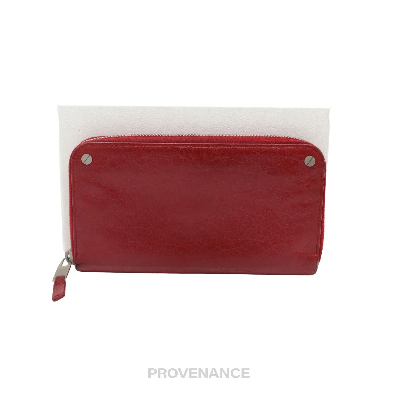Balenciaga Screw Stud Long Zip Wallet - Red Leather