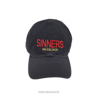Balenciaga Sinners Cap - Washed Black 100% Authentic - Money Back Guarantee Condition Notes: some signs of cosmetic wear professionally cleaned - Logo embroidered at front - Topstitched details and embroidered ventilation eyelets - Adjustable - 100% Cotton - Made in Italy Tagged Size: "L/59", Adjustable FREE EXPRESS SHIPPING SAME-DAY SHIPPING. HASSLE-FREE RETURNS