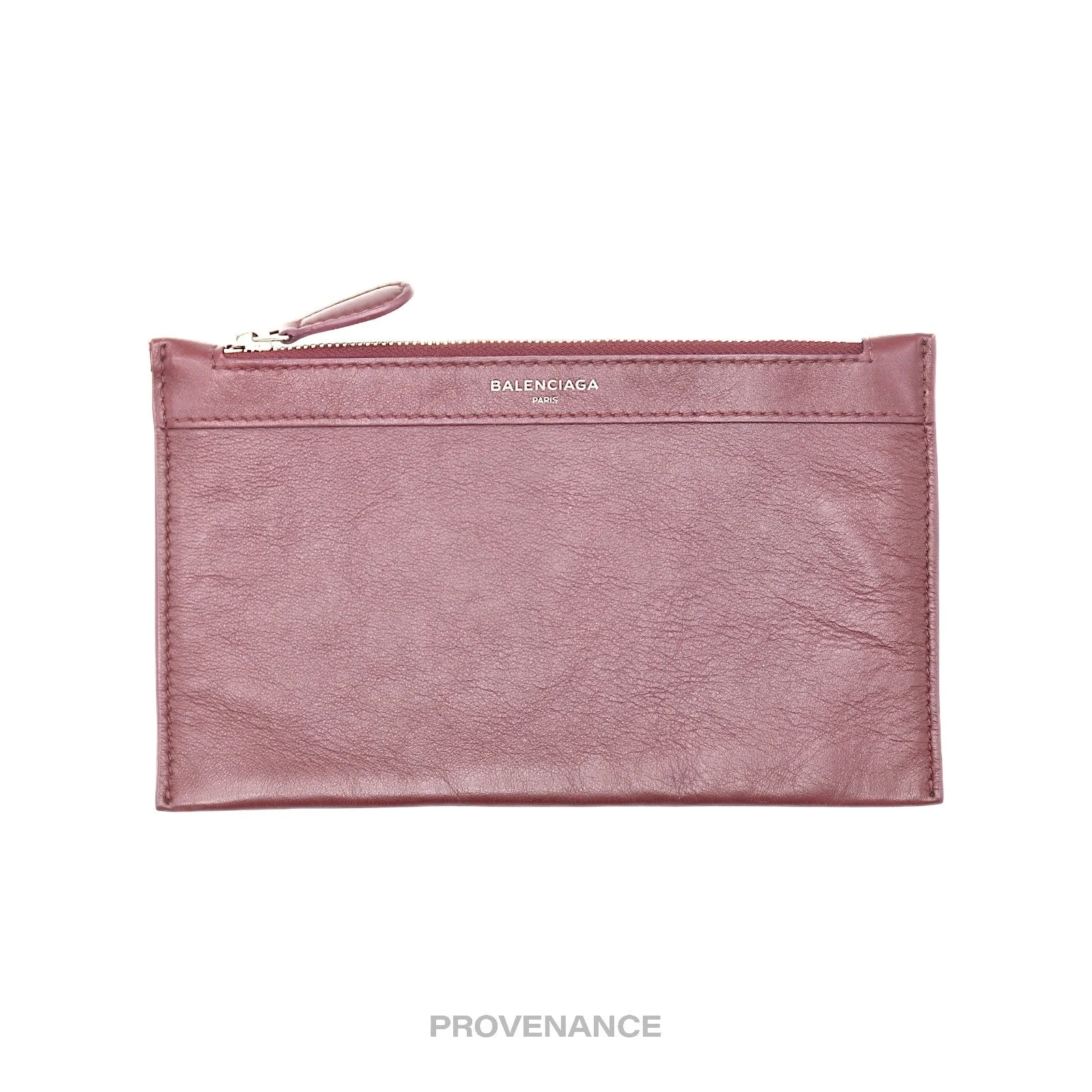Balenciaga Zip Pouch Wallet - Bordeaux Leather 100% Authentic - Money-Back Guarantee Condition Notes: some signs of cosmetic wear - Iconic "Arena" creased leather - Logo at exterior - 1 Large utility compartments - Zip closure - Tonal textile lining - Tonal leather trim Dimensions: 22 x 13 cm. FREE EXPRESS SHIPPING SHIPS SAME-DAY HASSLE-FREE RETURNS