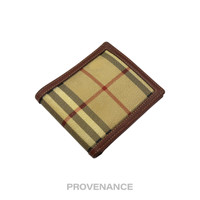 Burberry Bifold Wallet - Haymarket Check Brown 100% Authentic - Money Back Guarantee Condition Notes: some signs of cosmetic wear - Classic Burberry Nova Check - 3 card slots - 2 side slots - 1 snap-closure compartment - 2 bill compartments - Tonal leather lining - Made in Italy FREE EXPRESS SHIPPING SAME-DAY SHIPPING HASSLE-FREE RETURNS