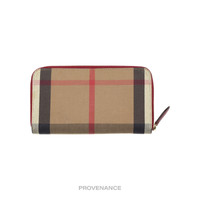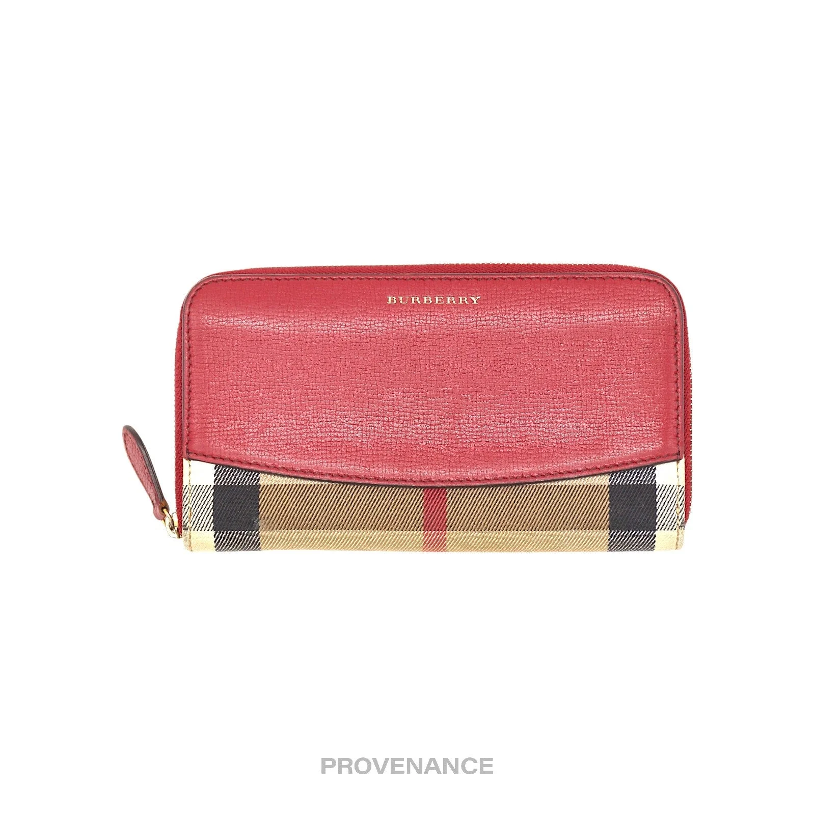 Burberry Logo Zip Long Wallet - Red Nova Check