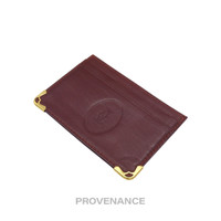 Cartier Card Holder Wallet - Burgundy Red Leather 100% Authentic - Money Back Guarantee Condition Notes: some signs of cosmetic wear - Classic Burgundy leather - Cartier logo debossed at exterior - 2 exterior card slots - Single large interior slot - Tonal textile lining - Gold hardware FREE EXPRESS SHIPPING SAME-DAY SHIPPING HASSLE-FREE RETURNS