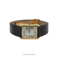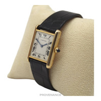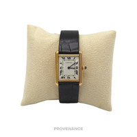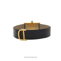 Cartier Tank LC A/BD- 18K Yellow Gold Watch 100% Authentic - Money Back Guarantee ORIGINAL RETAIL TOTE, TRAVEL CASE, PAPERS, STRAP INCLUDED Condition Notes: some signs of cosmetic wear Brand New Alligator strap from Cartier Original alligator strap included (poor condition) - Classic Cartier Tank LC - 18K yellow gold case and original Cartier deployant clasp - Mechanical movement - c. 1970s