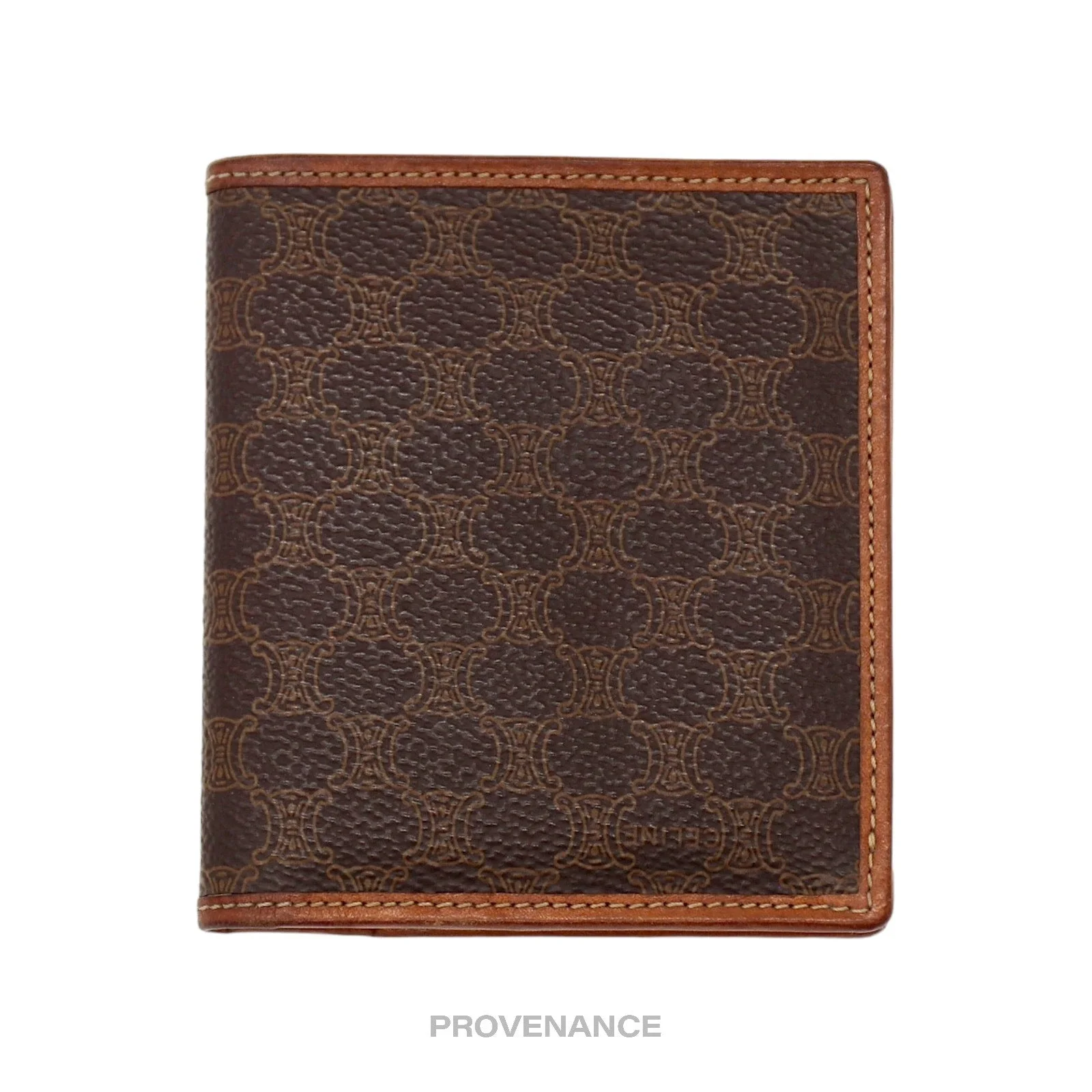 Celine Bifold Wallet - Macadam Brown 100% Authentic - Money-Back Guarantee Condition Notes: some signs of cosmetic wear - 3 card slots - 1 bill compartment - 2 interior utility compartments - Single snap-closure compartment - Tonal leather lining - Classic Celine Macadam - Logo debossed at exterior FREE EXPRESS SHIPPING SHIPS WITHIN 24HR. HASSLE-FREE RETURNS