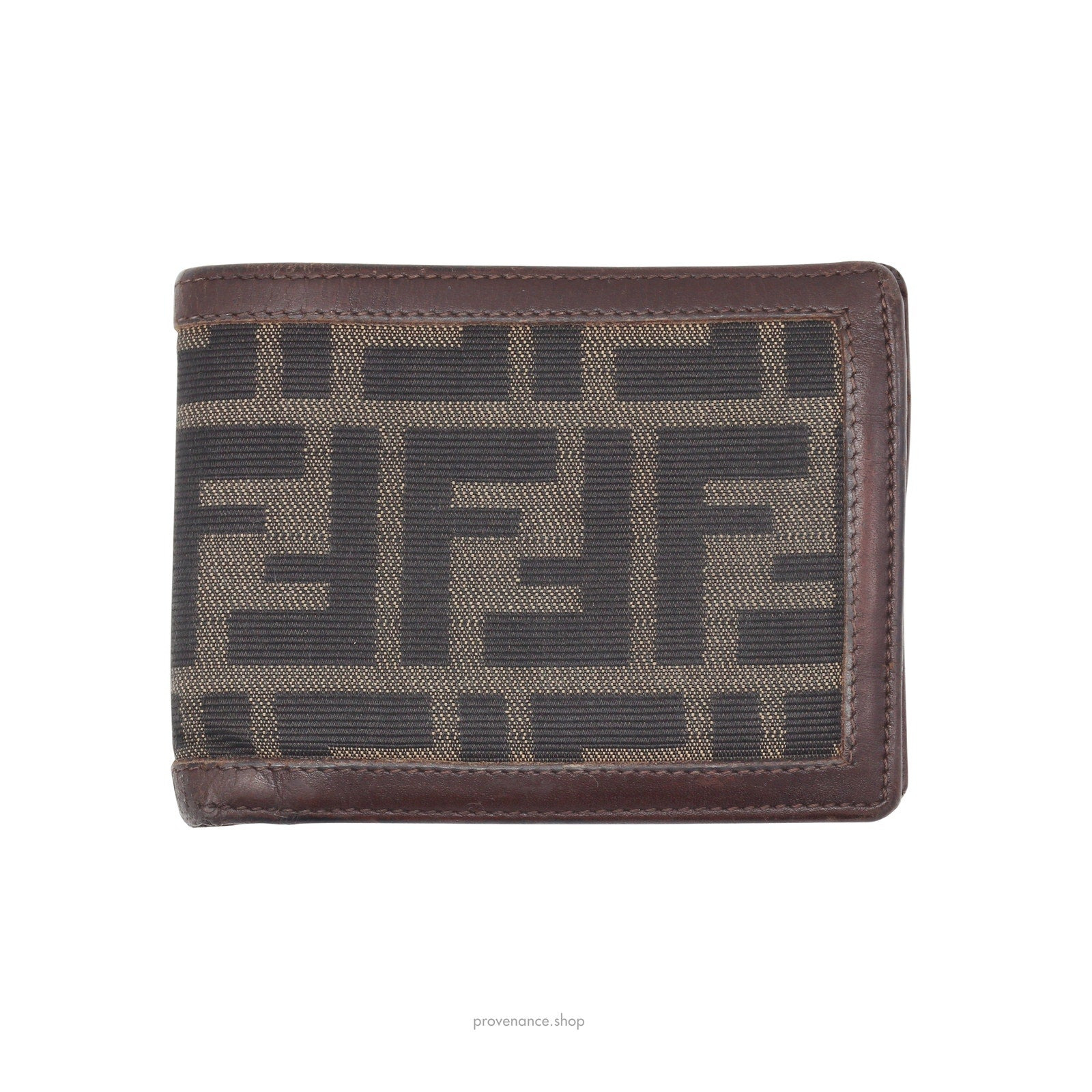 Fendi Bifold Wallet - FF Zucca 100% Authentic - Money Back Guarantee Condition Notes: some signs of cosmetic wear lining wear at snap-closure compartment some corner wear Est. Retail: $640 - 4 card slots - 1 snap-closure compartment - 1 bill compartment - Tonal leather lining - Made in Italy FREE EXPRESS SHIPPING SHIPS WITHIN 24HR.