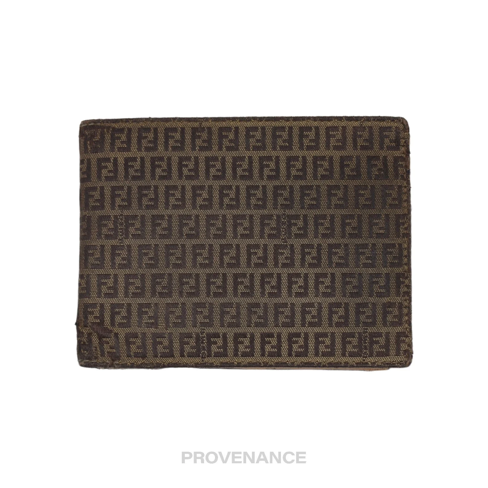 Fendi Bifold Wallet - Micro FF Zucca 100% Authentic - Money Back Guarantee Condition Notes: some signs of general wear - Iconic Zucca FF motif - 4 card slots - 1 snap-closure compartment - 1 bill compartment - Tonal leather lining Length:10 cm Height:9 cm Depth:1 cm FREE EXPRESS SHIPPING SHIPS WITHIN 24HR.