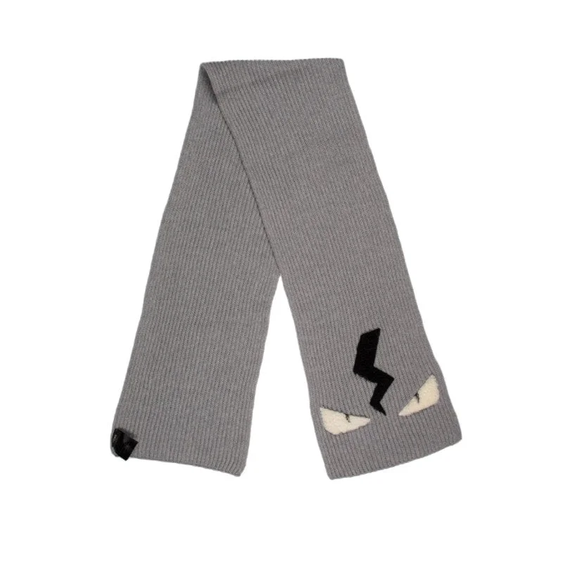 FENDI Eye Monster Wool Scarf - Grey