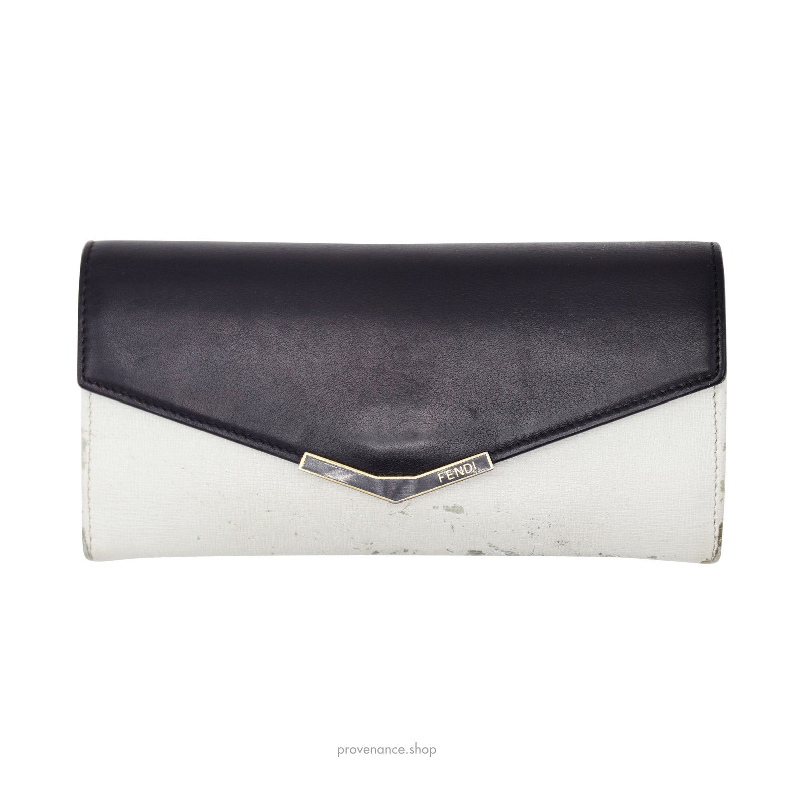 Fendi Long Wallet - Black Leather 100% Authentic - Money Back Guarantee Condition Notes: some signs of cosmetic wear Est. Retail: $1675 - 12 card slots - 2 compartments for bills - 1 zipped compartment - 2 side slots - Cross grain leather lining - Magnetic closure - Gold enamelled hardware - Made in Italy FREE EXPRESS SHIPPING SHIPS WITHIN 24HR. NO CUSTOMS FEES