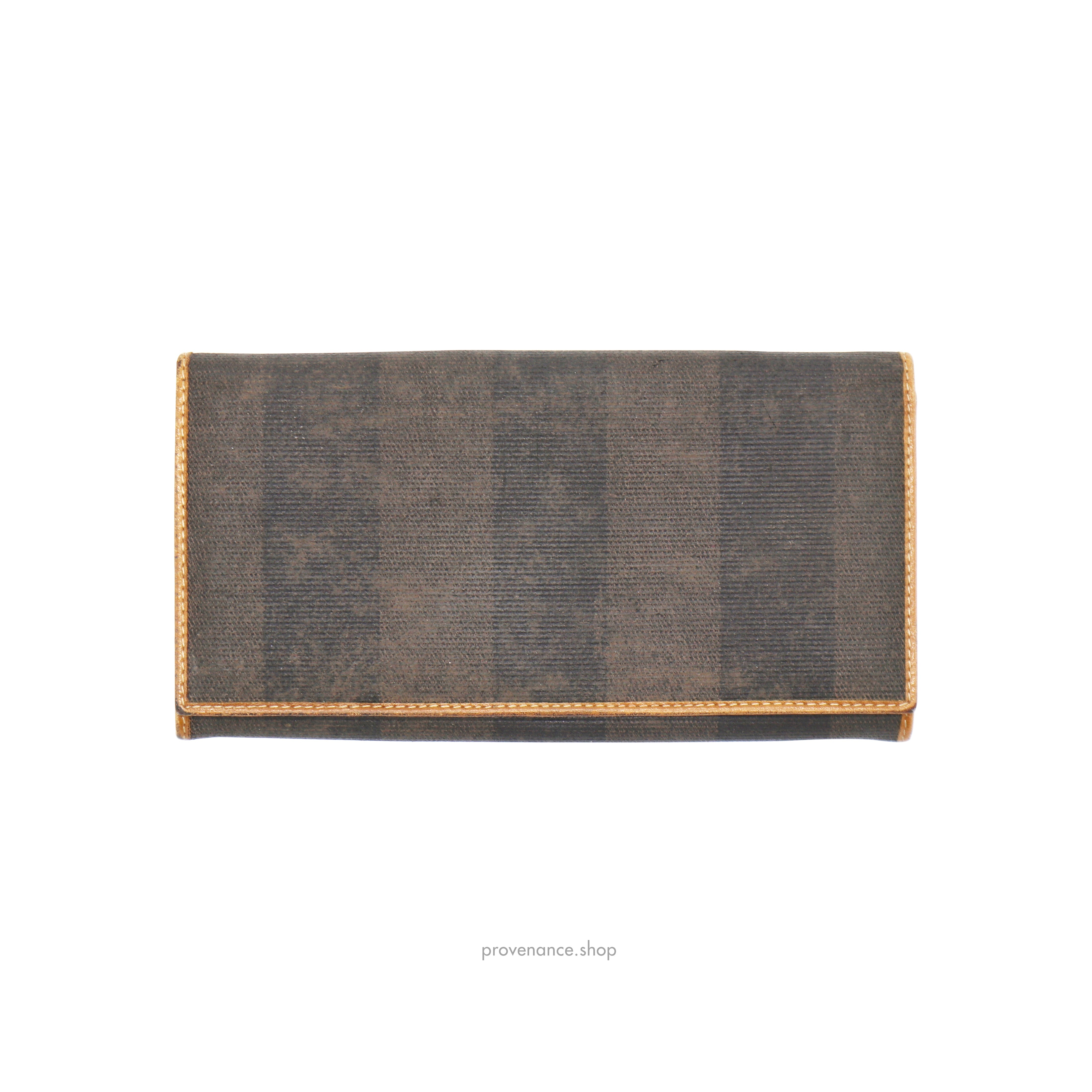Fendi Pequin Striped Long Wallet 100% Authentic - Money Back Guarantee Condition Notes: some signs of cosmetic wear - Classic Fendi Pequin striped design - 8 card slots - 3 interior utility compartments - 1 zipped compartment - Tan leather lining FREE EXPRESS SHIPPING SHIPS WITHIN 24HR. NO CUSTOMS FEES