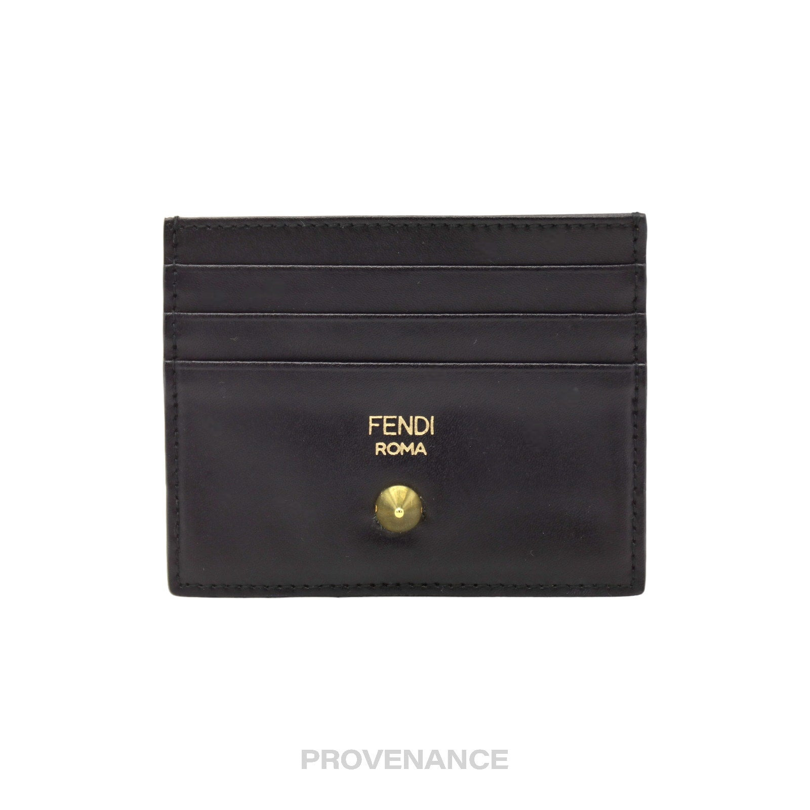 Fendi Card Holder Wallet - Black 100% Authentic - Money Back Guarantee Condition Notes: some signs of cosmetic wear stud professionally replaced - Logo stamped at exterior - 6 exterior card slots - 1 interior utility slot - Gold hardware - Tonal textile lining - Made in Italy FREE EXPRESS SHIPPING SHIPS WITHIN 24HR.