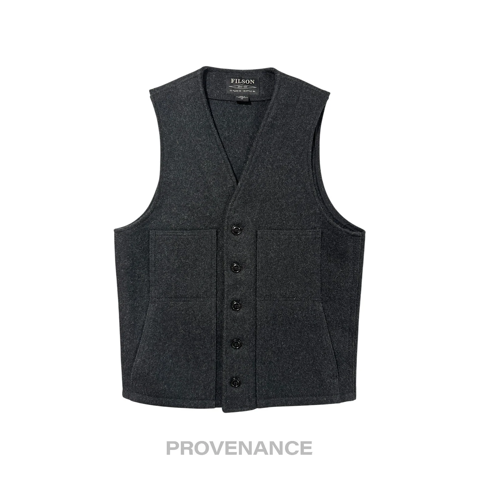 Filson Mackinaw Wool Vest - Charcoal 36/XS 100% Authentic - Money Back Guarantee Condition Notes: Very minor signs of cosmetic wear Professionally cleaned Tagged size: 36, equivalent to Filson XS (generous fit like men's M) - Made with 100% virgin wool - 2 side-entry hand pockets - Fit for Field, Workwear, Everyday, Travel uses - Snap closure - Made in USA FREE EXPRESS SHIPPING SAME-DAY SHIPPING HASSLE-FREE RETURNS
