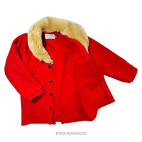 Filson Wool Packer Coat - Mackinaw Wool Red - 38 S 100% Authentic - Money-Back Guarantee RARE CARDINAL RED COLOURWAY BRAND NEW SHEARLING COLLAR BY FILSON Condition Notes: Brand New shearling collar and darning by Filson some signs of cosmetic wear professionally cleaned Size: 38 (FILSON S) - Oversized fit - Made with 100% virgin wool - Classic Cruiser multi-pocket design - Thick pull-up sheepskin collar - Naturally water-repellent fabric is breathable and wind-resistant - 4 snap-flap pockets, slotted utility pocket, 2 side-entry hand pockets, interior-stow - pocket and full-width pass-through back pocket. - Button-front closure; button-adjustable cuffs MATERIAL 24-oz. Mackinaw Wool (plaids are 26-oz.) USAGE Field, Workwear, Everyday, Travel CARE Dry clean ORIGIN Made in USA. FREE EXPRESS SHIPPING SHIPS WITHIN 24HR. HASSLE-FREE RETURNS