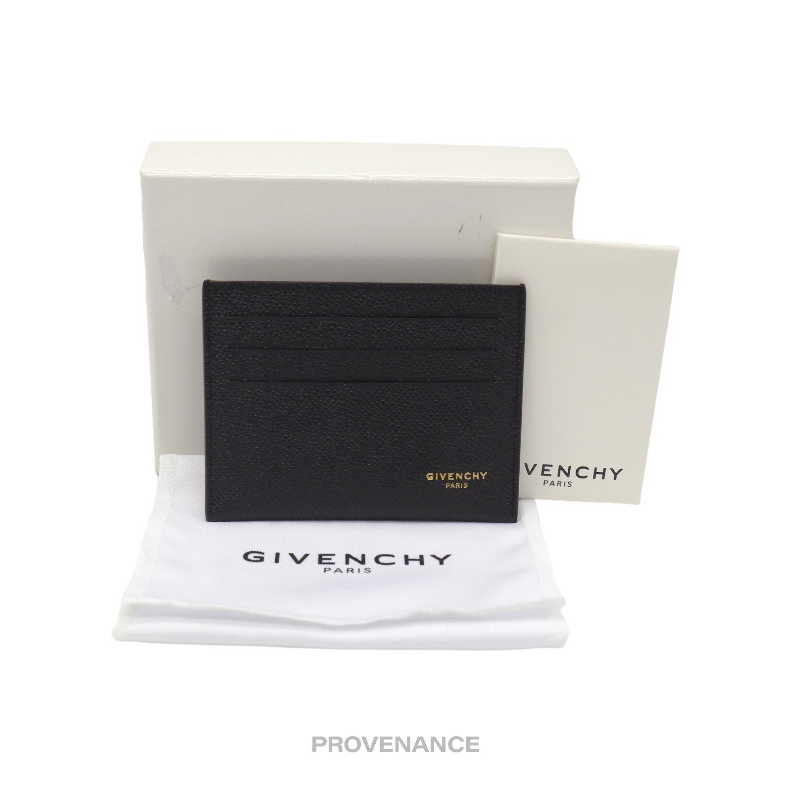 Givenchy 3CC LogoCard Holder - Black Leather 100% Authentic - Money Back Guarantee ORIGINAL RETAIL BOX + DUST BAG, ETC. INCLUDED Condition Notes: Unused Box may display some signs of wear due to storage - Logo stamped in gold foil at exterior - 3 exterior slots - 1 interior slot - Grained black leather - Contrasting leather lining - Made in Italy FREE EXPRESS SHIPPING SHIPS WITHIN 24HR. HASSLE-FREE RETURNS