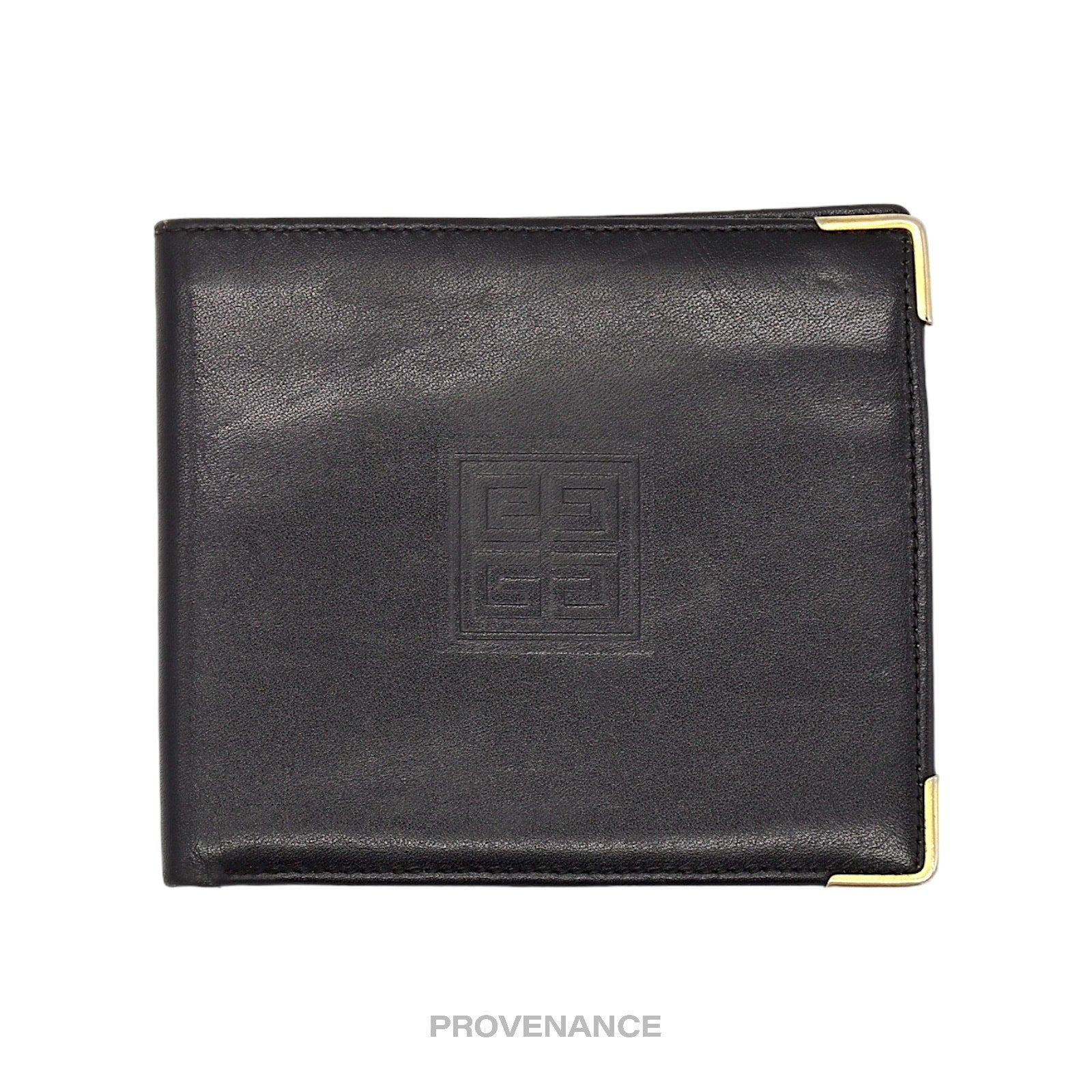 Givenchy 4CC Logo Bifold Wallet - Black Leather 100% Authentic - Money Back Guarantee Condition Notes: some signs of cosmetic wear - 4 card slots - 2 interior utility compartments - 1 bill compartment - Tonal leather lining - Gold hardware - Logo debossed at the exterior FREE EXPRESS SHIPPING SHIPS WITHIN 24HRS. HASSLE-FREE RETURNS