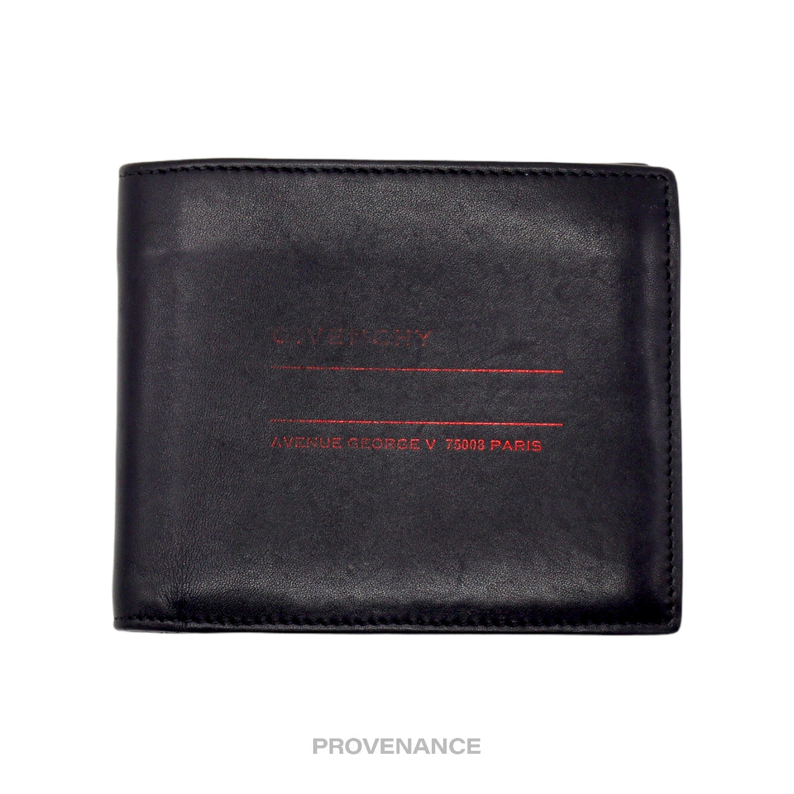 Givenchy 8CC Address Bifold Wallet - Black Leather 100% Authentic - Money-Back Guarantee Condition Notes: some signs of cosmetic wear - Logo with address stamped at exterior in metallic red foil - 8 interior card slots - 1 bill compartment - Tonal leather lining FREE EXPRESS SHIPPING SHIPS WITHIN 24HR. HASSLE-FREE RETURNS
