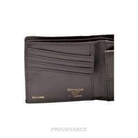 Givenchy Bifold Wallet - Black Leather 100% Authentic - Money Back Guarantee Condition Notes: some signs of cosmetic wear - 4 card slots - 3 interior utility compartments - 2 bill compartments - 1 snap-closure compartment - Tonal leather lining - Logo debossed at exterior FREE EXPRESS SHIPPING SHIPS WITHIN 24HRS.