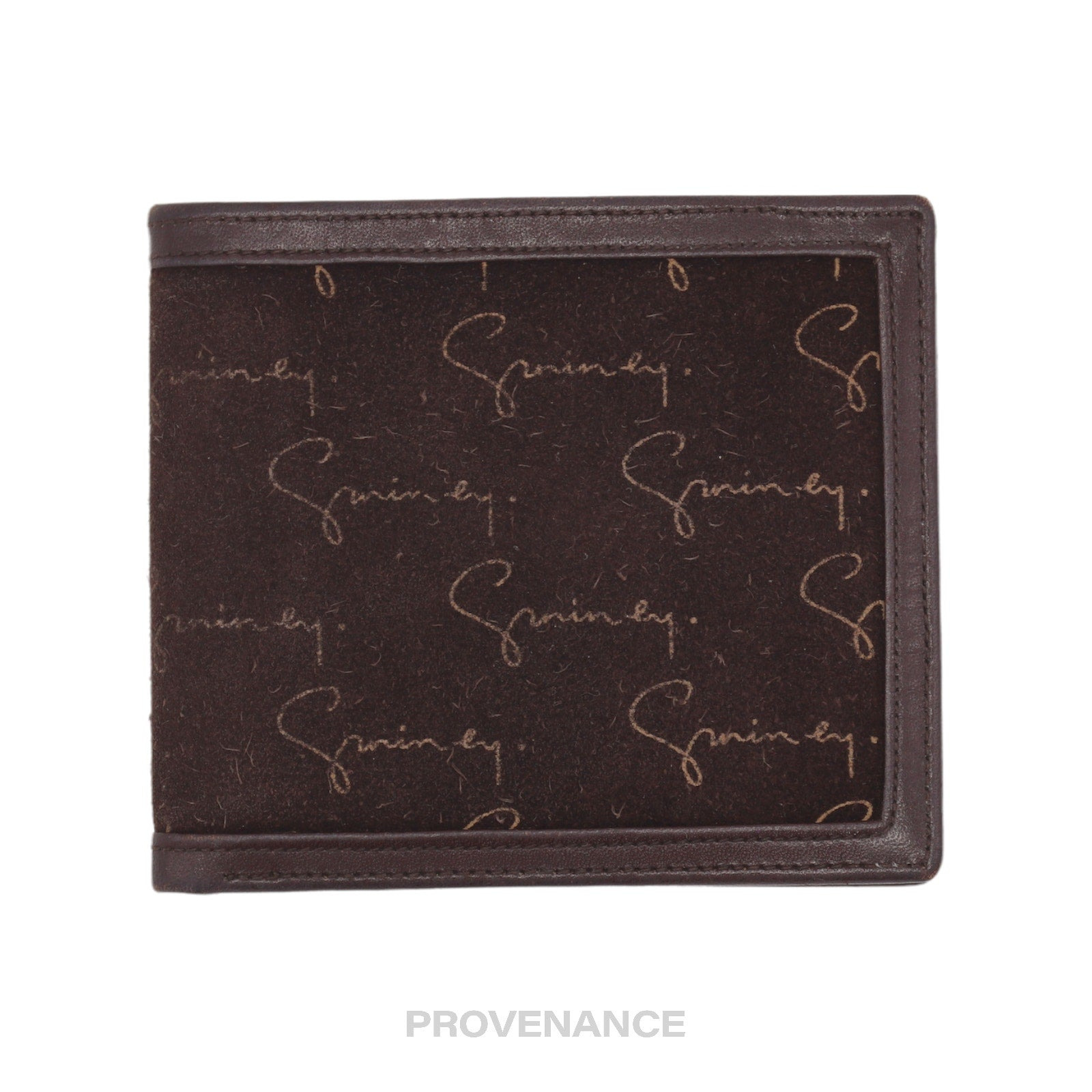 Givenchy Gentleman Bifold Wallet - Suede 100% Authentic - Money Back Guarantee Condition Notes: very minor signs of cosmetic wear - Logo debossed at exterior - 1 frosted ID window - 1 snap-closure compartment - 1 bill compartment - Gold hardware - Tonal leather lining FREE EXPRESS SHIPPING SHIPS WITHIN 24HR. HASSLE-FREE RETURNS