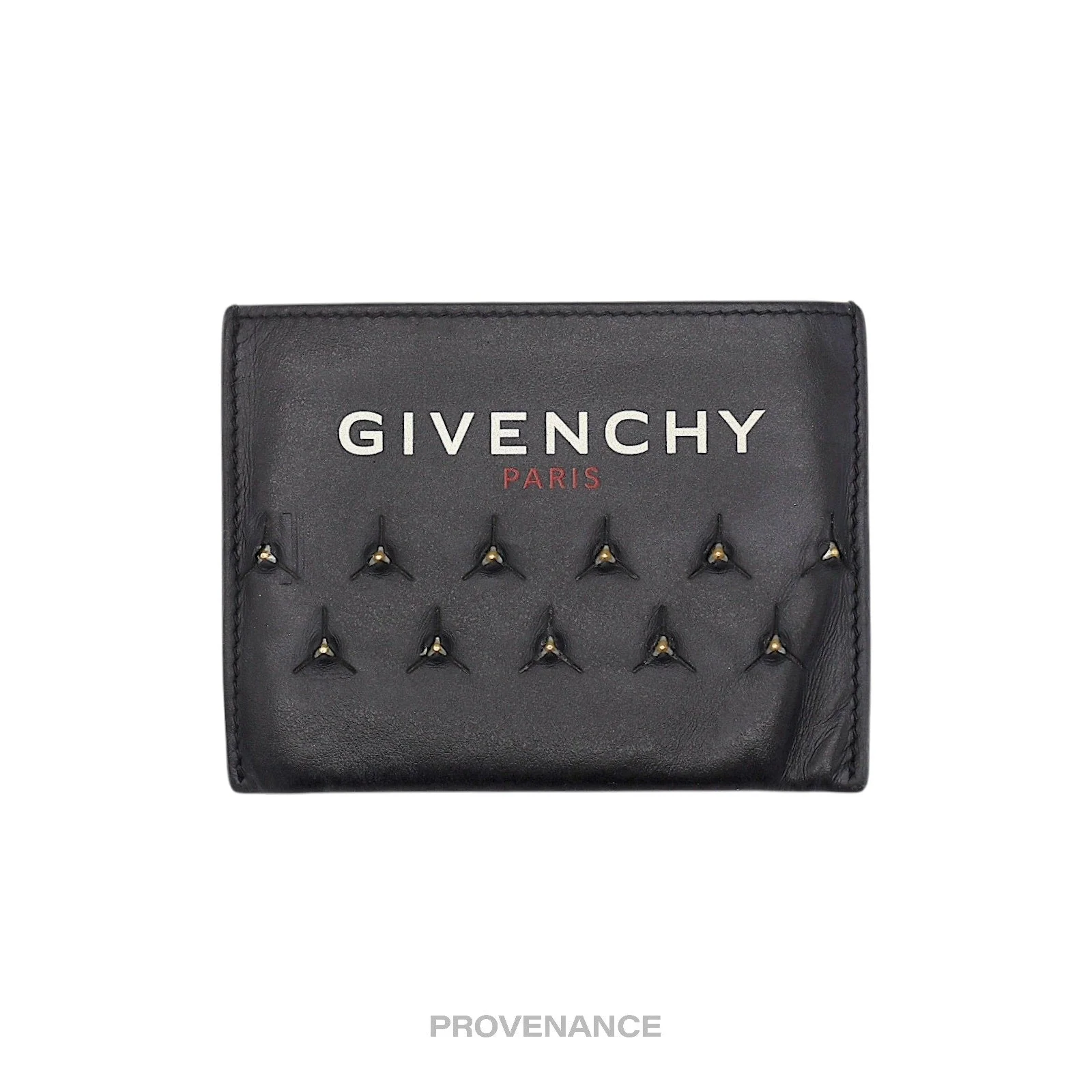 Givenchy Logo Card Wallet - Black Leather Metal Studs