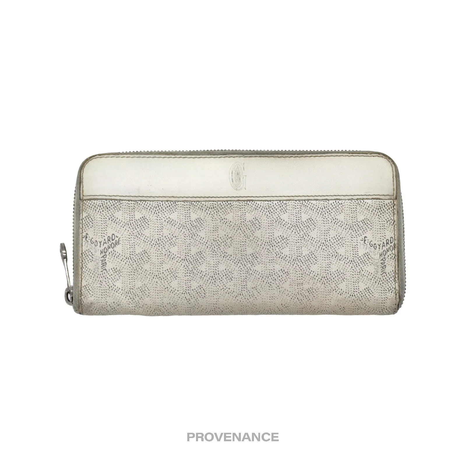 Goyard Matignon Zipped Wallet in White Goyardine 100% Authentic - Money Back Guarantee Condition Notes: some signs of cosmetic wear - 8 credit card slots - Gusseted interior utility compartments - Interior zip compartment - Tonal leather lining - Beautiful and durable White Goyardine FREE EXPRESS SHIPPING SHIPS WITHIN 24HR. HASSLE-FREE RETURNS