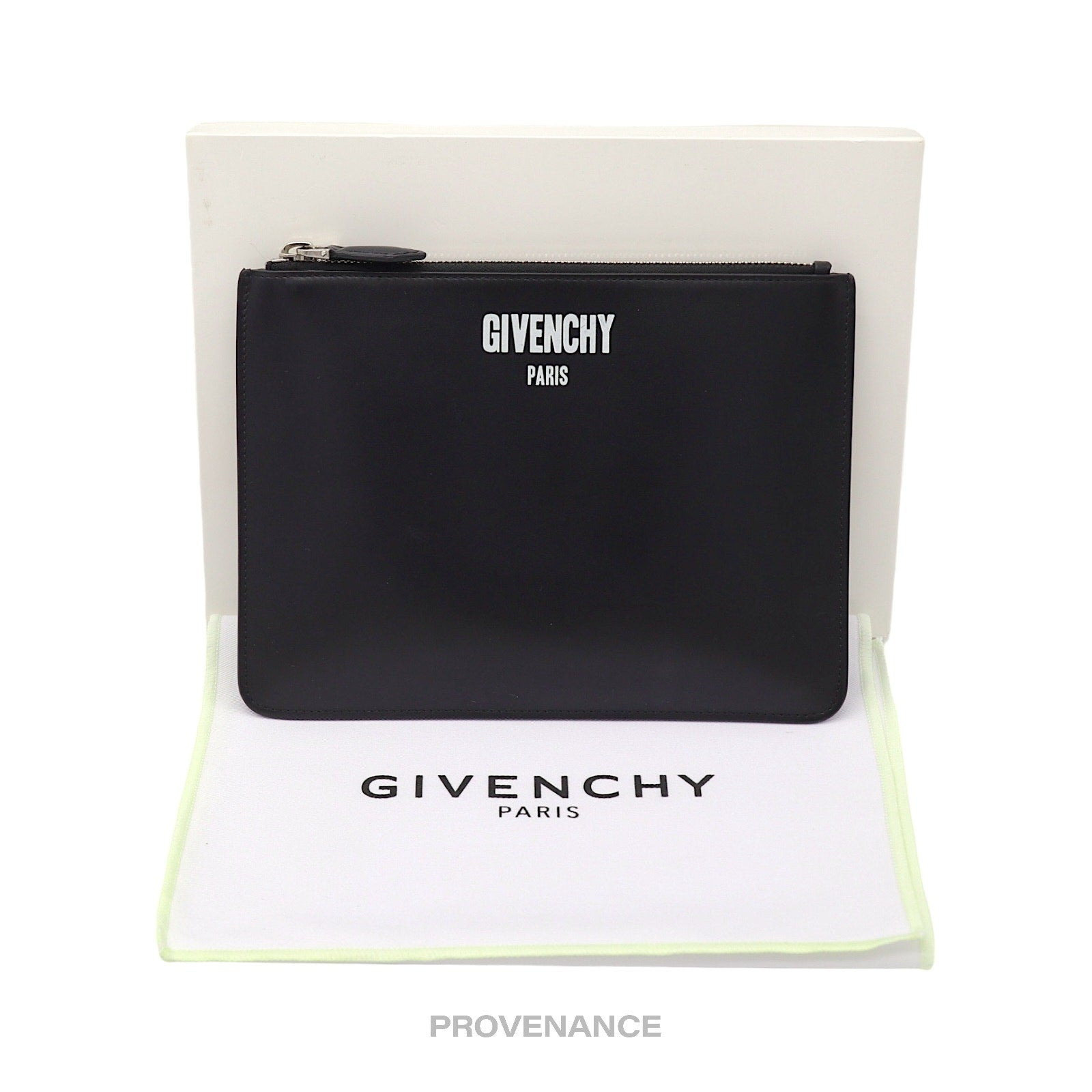 Givenchy Logo Zip Pouch Clutch Bag - Black Leather