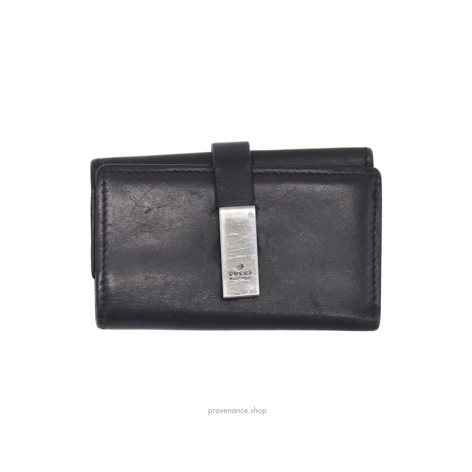 Gucci 6 Key Holder - Black Leather 100% Authentic - Money-Back Guarantee Condition Notes: some signs of cosmetic wear 3 key rings appear to be absent - Trifold design - Black leather - Palladium hardware - Snap closure - Made in Italy FREE EXPRESS SHIPPING SHIPS WITHIN 24HR. HASSLE-FREE RETURNS