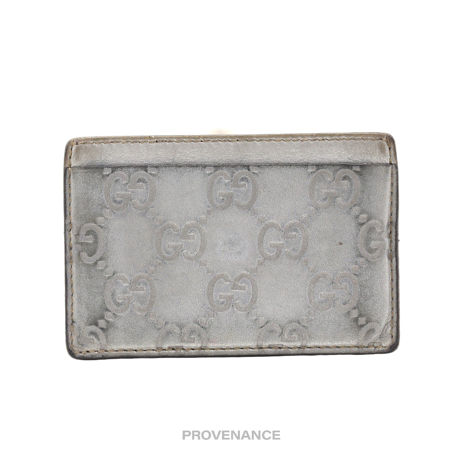 Gucci Card Holder - GG Guccissima Metallic Leather 100% Authentic - Money Back Guarantee Condition Notes: some signs of cosmetic wear - Classic GG Guccissima Leather - 2 card slots - 1 interior slot - Made in Italy FREE EXPRESS SHIPPING SHIPS SAME-DAY HASSLE-FREE RETURNS