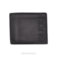 Gucci Embossed Bifold Wallet - Black 100% Authentic - Money Back Guarantee ORIGINAL RETAIL BOX INCLUDED Condition Notes: some signs of cosmetic wear some lining damage some corner wear - 4 card slots - 1 snap-closure compartment - 2 bill compartments - Tonal leather lining FREE EXPRESS SHIPPING SHIPS WITHIN 24HR. HASSLE-FREE RETURNS