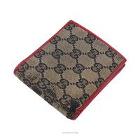 Gucci GG Canvas Bifold Wallet - Red 100% Authentic - Money Back Guarantee Condition Notes: some signs of cosmetic wear some corner wear Est. Retail: $585 - Classic GG Canvas - 3 card slots - 1 snap-closure compartment - 2 bill compartments - 2 side slots - Leather lining - Made in Italy FREE EXPRESS SHIPPING SHIPS WITHIN 24HRS.