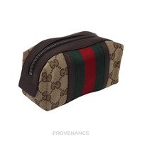 Gucci GG Canvas Web DOPP Kit 100% Authentic - Money Back Guarantee Condition: Very minor signs of cosmetic wear Approximate Dimensions: 14 x 7 x 7 cm. - Classic GG canvas - Contrasting leather trim - Zipper closure - Textile lining FREE EXPRESS SHIPPING SHIPS WITHIN 24HR. HASSLE-FREE RETURNS