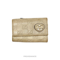 Gucci GG Heart 6 Key Holder - Cream Guccissima Leather 100% Authentic - Money-Back Guarantee Condition Notes: some signs of cosmetic wear 1 hook appears to be misshapen some zipper resistance - Trifold design - Cream Guccissima leather - Palladium hardware - 6 key hooks - Snap closure - Made in Italy FREE EXPRESS SHIPPING SAME-DAY SHIPPING HASSLE-FREE RETURNS